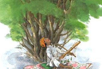 Loin des montagnes de sa naissance, il entonne des chansons de son pays, tout en jouant de son sitar (je suppose qu'il s'agit de cet instrument).