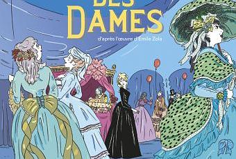 Parmi elles, se trouvent Denise, petite fluette blonde venue de Normandie qui a troqué l'habit noir du deuil pour la robe de soie obscure du Bonheur. Elle est là, au centre de la couverture, et pourtant, on la distingue à peine, notre regard emporté par les robes de ces Dames et ces nuances de bleu, si présentes dans les planches à venir.
