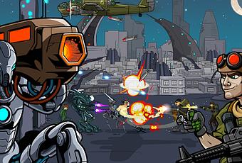 Train a massive army from cavemen riding dinosaurs to World War tanks! All the way to hugely devastating robot warriors from the future age! There are so many different units to train across 7 completely unique ages of war. With 29 unit types at your disposal such as the Assault Spartan, Anubis Warrior, Mages, Knights, Rifleman, Cannons, Grenade Soldiers, Cyborgs and so many more! If you think the best offense is a strong defense try stacking up rows of turrets that mow down the enemy! Yes we still have the famous Chicken Turret which is a must build!